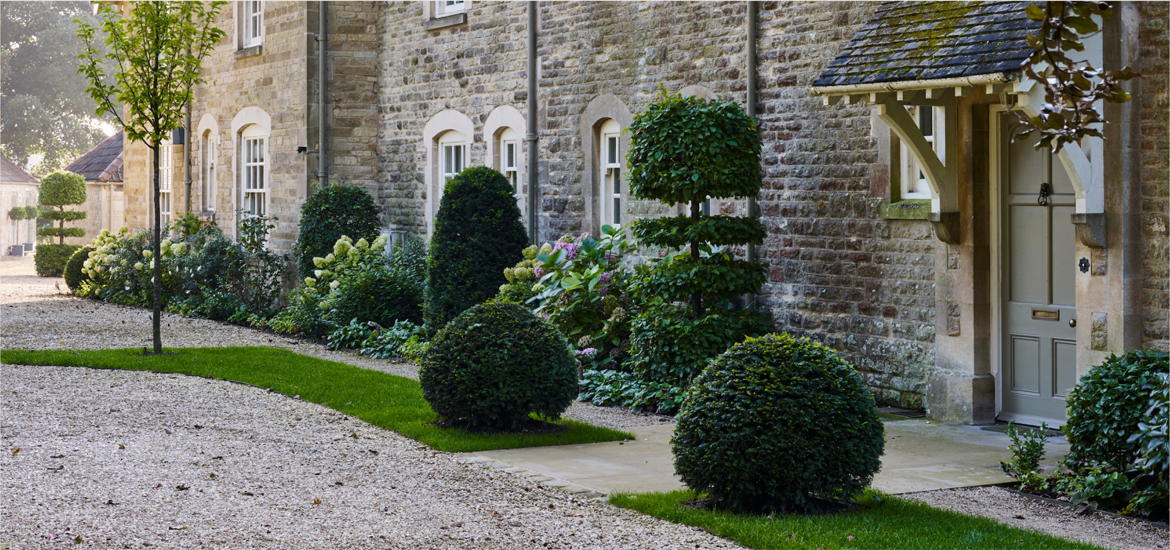 Designed by garden designer Rachel Garrood the grounds of the Cotswold country house had been extensively redesigned. The project comprised of Cotswold stone walling, new sawn York stone terraces, metal edging welded on site, cobble paths, hoggin paths, extensive topiary, planting, a lighting scheme design and ducting and a design of the automatic irrigation system.